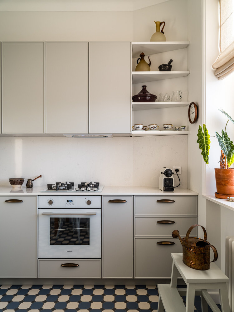 Фотография: Кухня и столовая в стиле Скандинавский, Эклектика, Винтажный, Классический, Квартира, Проект дня, Москва, Елена Зуфарова, Сталинка, Кирпичный дом, 3 комнаты, 60-90 метров – фото на INMYROOM