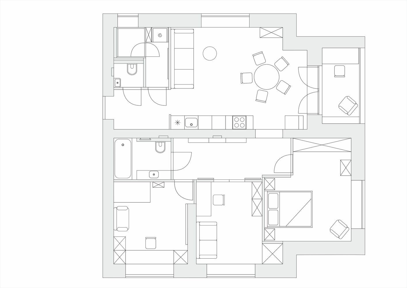 Фотография: Планировки в стиле , Современный, Квартира, Проект дня, Эко, Блочный дом, 4 и больше, 60-90 метров, Анна Терентьева – фото на INMYROOM