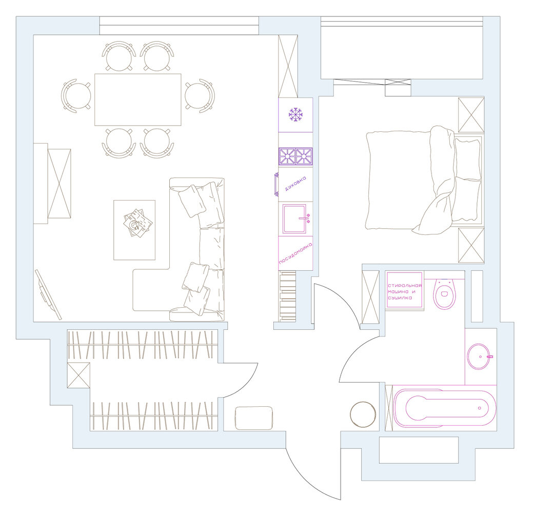 Фотография: Планировки в стиле , Современный, Квартира, Проект дня, Москва, 2 комнаты, 40-60 метров, Катя Чистова – фото на INMYROOM